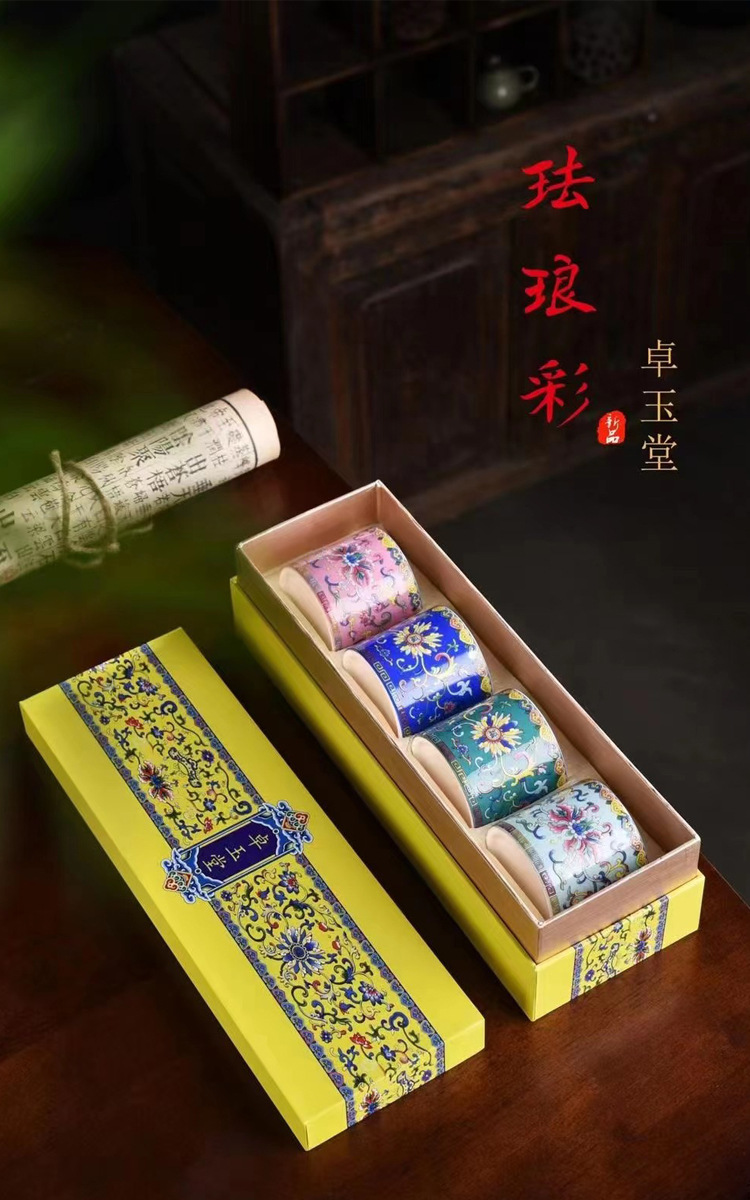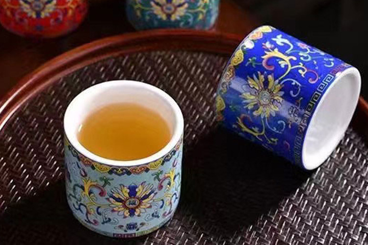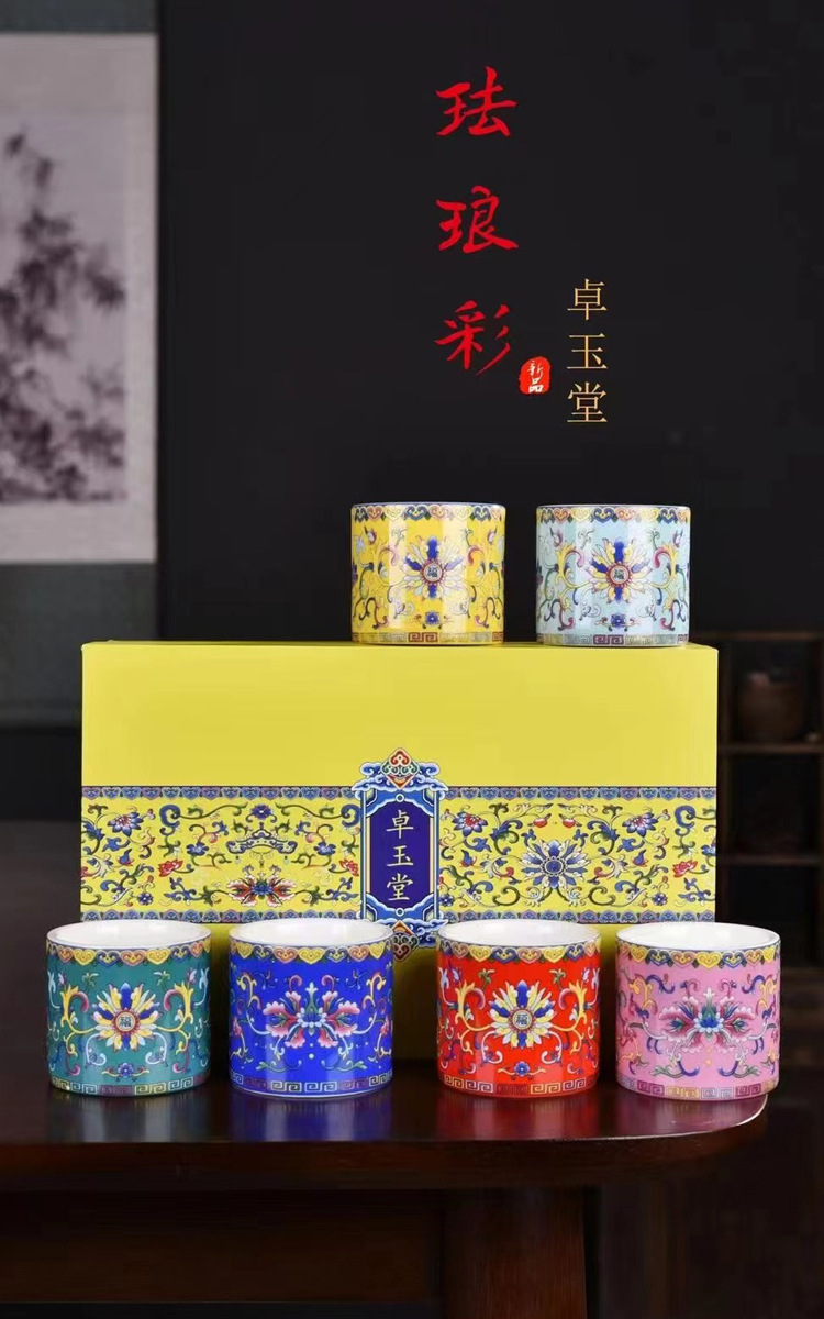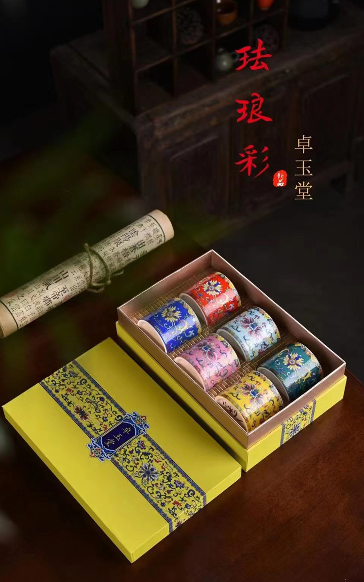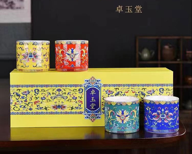 Palace Style Enamel Colourful Ceramic Tea Cup Sets in Gift Box